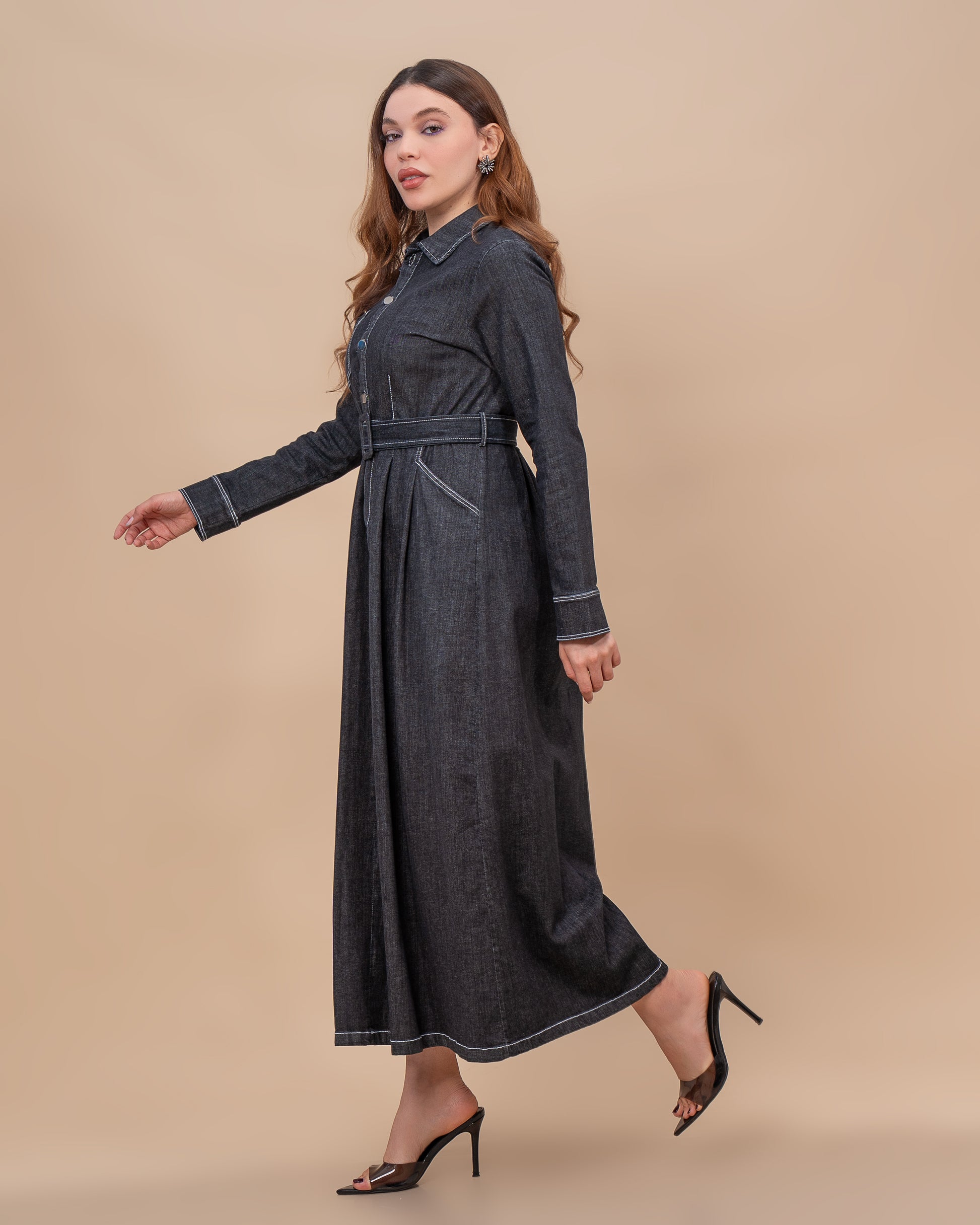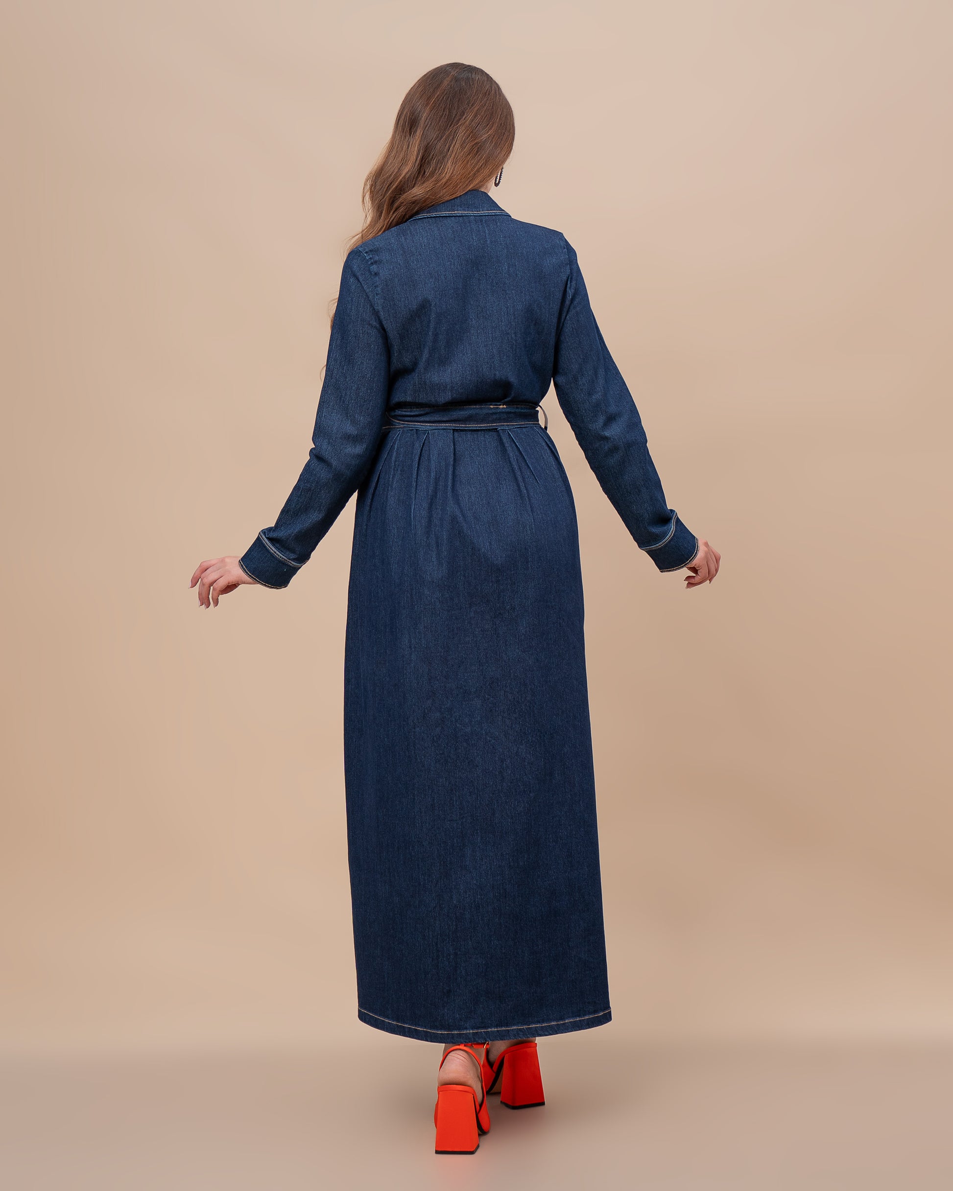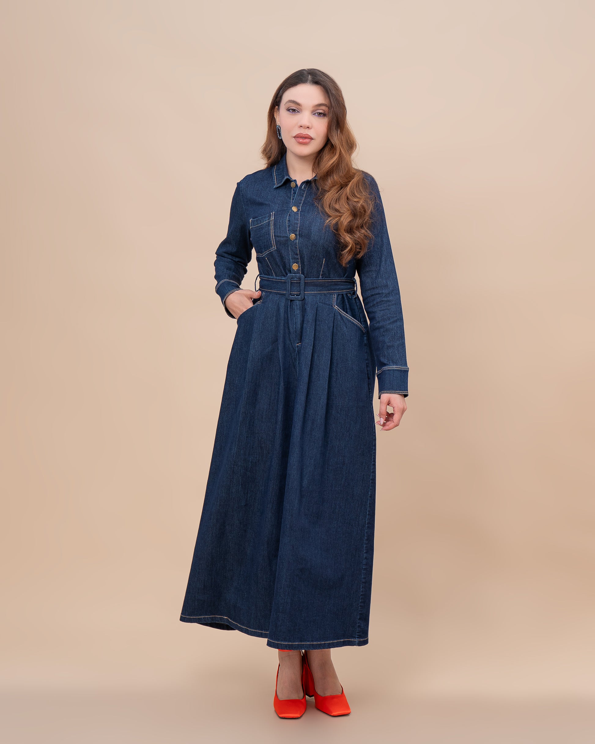 Robe longue en denim souple, pensée pour allier confort, élégance et pudeur au quotidien.