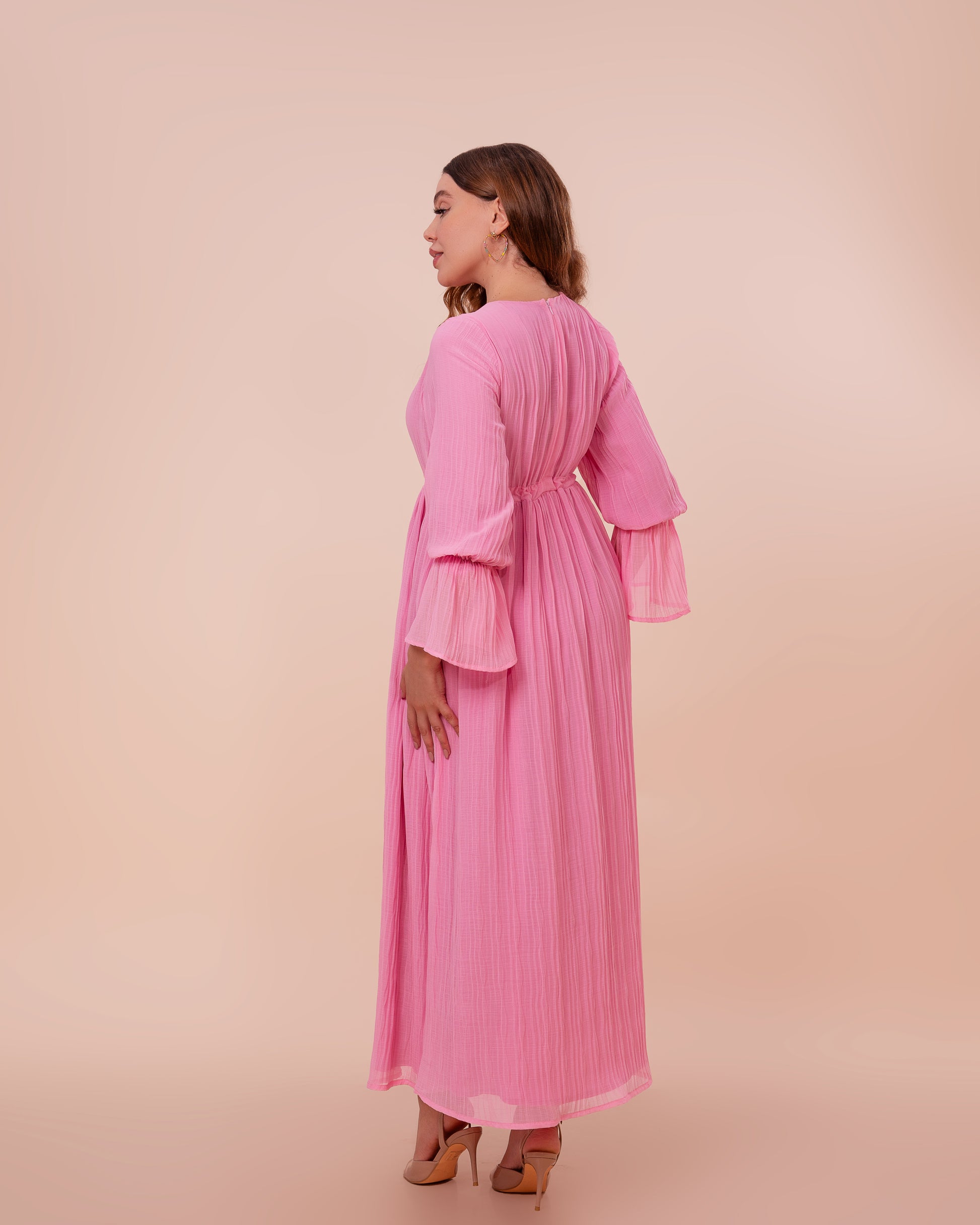 Laissez-vous séduire par la légèreté et l’élégance de la Luna Breeze. Confectionnée dans un tissu fluide à texture plissée, cette robe longue offre un tombé aérien et gracieux. Ses manches évasées à volants et sa ceinture ajustable soulignent subtilement la silhouette tout en assurant un confort optimal. Disponible en rose tendre pour une allure romantique ou jaune soleil pour une touche lumineuse et vitaminée.